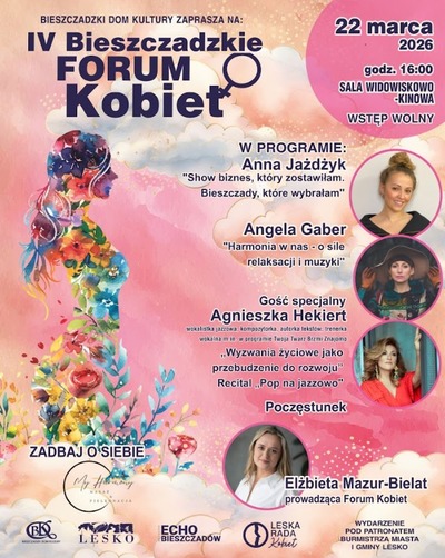 Bieszczadzki Dom Kultury w Lesku zaprasza na IV edycję wydarzenia pod nazwą Bieszczadzkie Forum Kobiet. W tym roku ponownie zagoszczą u nas kobiety niezwykłe, których historie i sukcesy zawodowe inspirują do budowania poczucia własnej wartości i osiągania wyznaczonych celów.